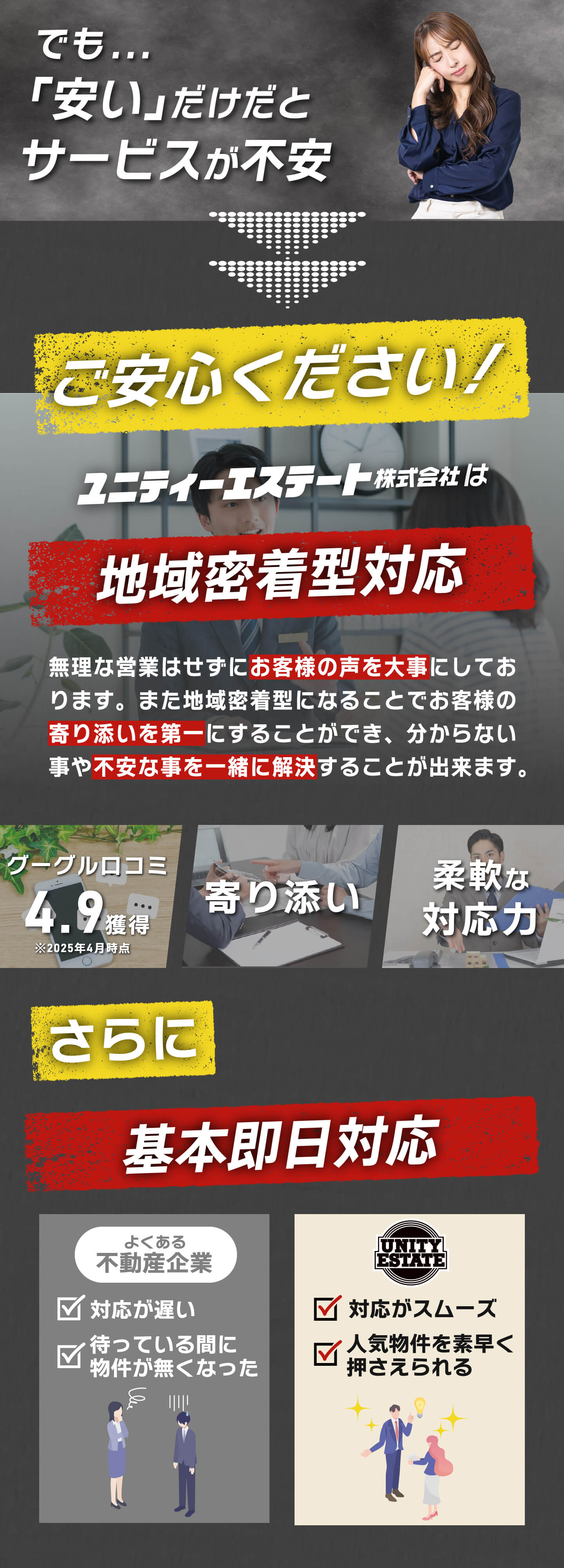 ユニティエステート株式会社 (以下「当社」)は、以下のとおり個人情報保護方針を定め、 個人情報保護の仕組みを構築し、全従業員に個人情報保護の重要性の認識と取組みを 徹底させることにより、個人情報の保護を推進致します。 個人情報の管理 当社は、お客さまの個人情報を正確かつ最新の状態に保ち、個人情報への不正アクセス・紛失・破損・改ざん・漏洩などを防止するため、セキュリティシステムの維持・管理体制の整備・社員教育の徹底等の必要な措置を講じ、安全対策を実施し個人情報の厳重な管理を行ないます。